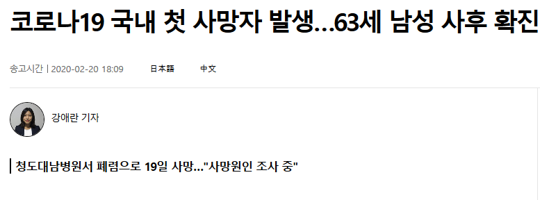 이 환자는 사망하기 하루전에 열이 나기 시작했음. 열이 안 나는 중국입국자를 모두 통과시키는 현재 검역체제가 얼마나 엉터리인지 알 수 있는 사례. 지금 한국 공항에서 코로나검역은 없다고 보면 됨.