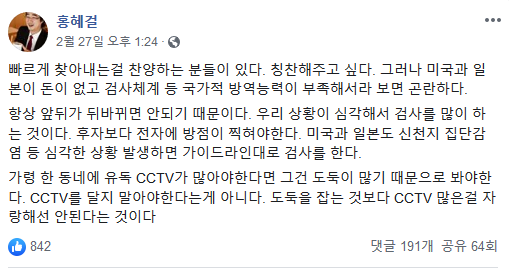 그러니까 2월초에 중국발 입국자 모두 검역하고 전원 2주간 자가격리하라는 감염학회 이야기를 들었어하지 않았을까하는 생각은 아니드는건가?