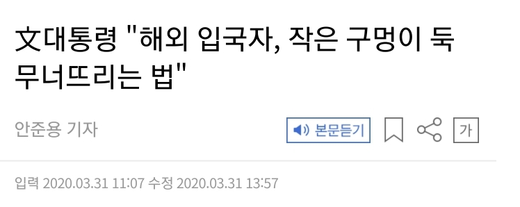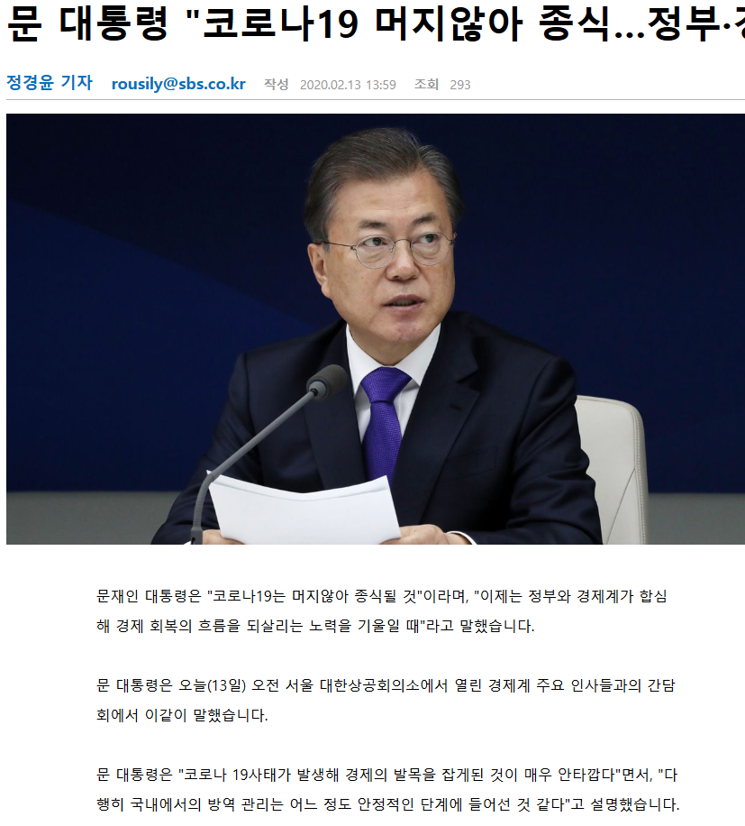 문재인 대통령님께서는 "바이러스 막아냈다!"라고 자평