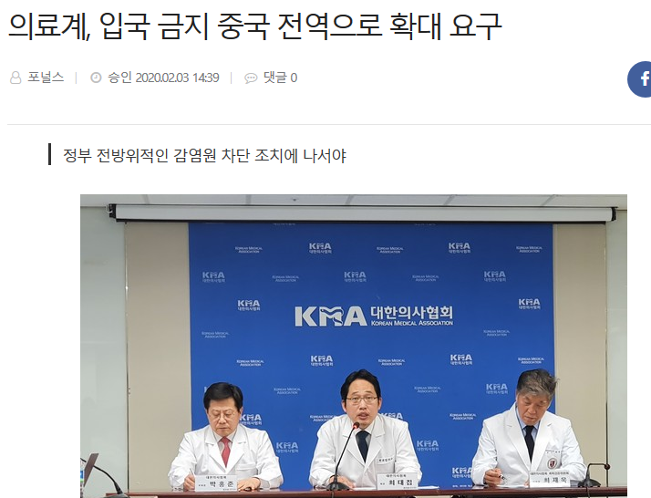 그리고 마침내 중국인 입국을 금지하자는 의협의 건의는 비로소 받아들여졌다.