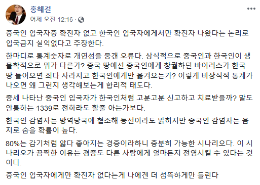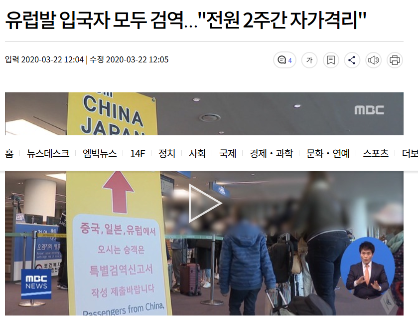 중국발 입국자는 괜찮지만 다른 나라 입국자는 위험하다!!