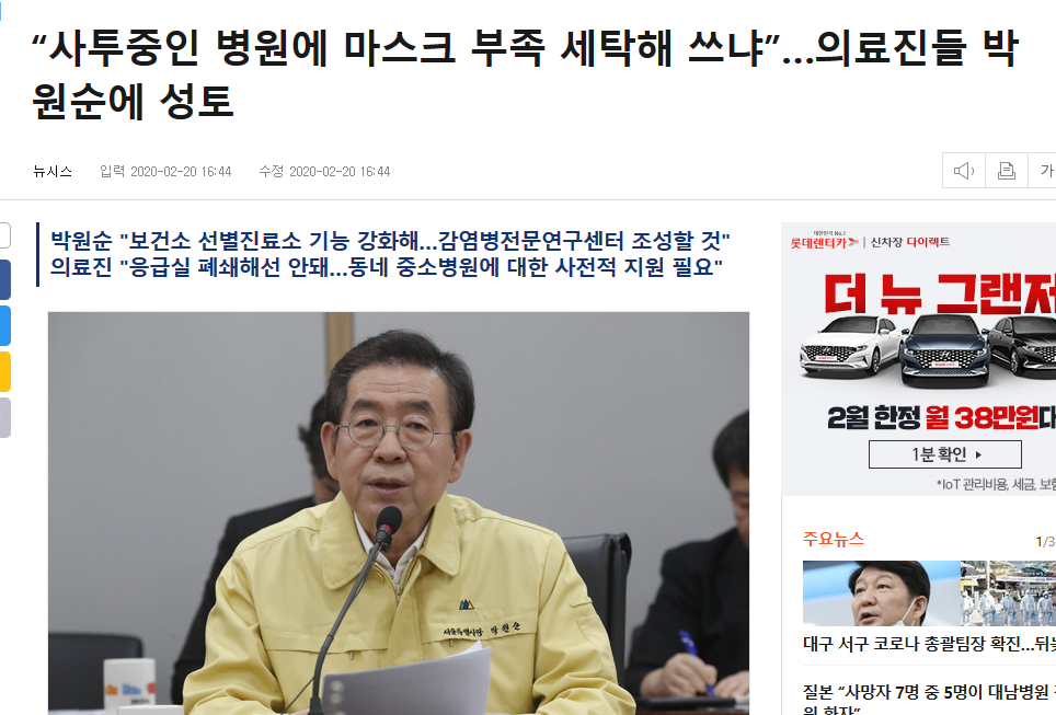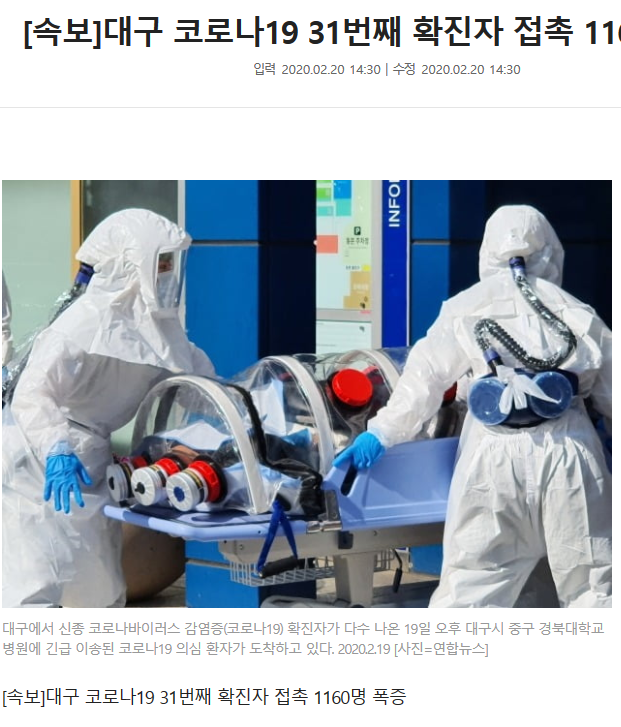 2월 26일 환자가 천명을 돌파하면서 보호복이 모자라게 됨 된장