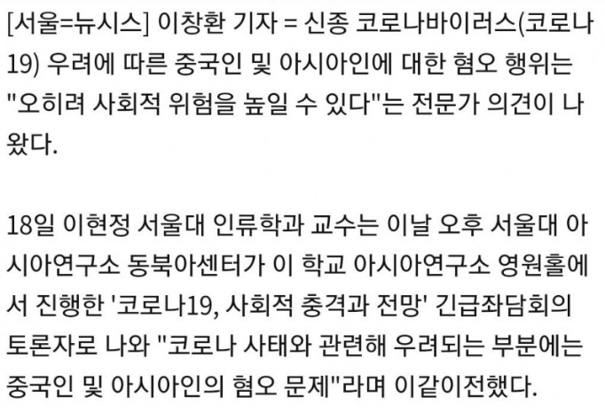 인류학과, 언론정보학과 교수님들도 바이러스에 대해 한마디...했어. 중국혐오하지말라고.