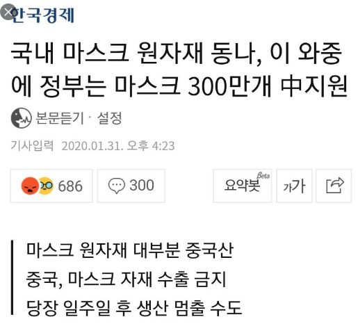 마스크는 이미 저번달부터 부족했음....중국 바이어들이 싹쓸이해감