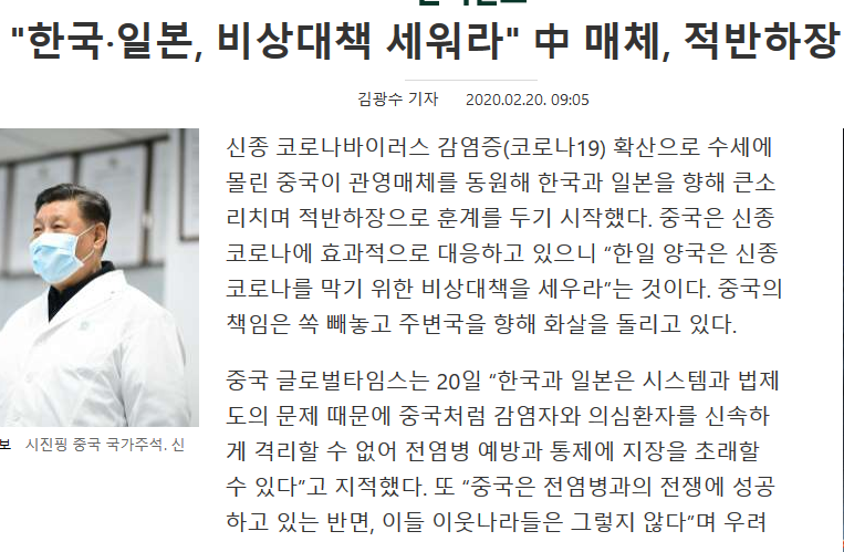 한국은 1월 28일에 보호복 10만벌을 중국에 기부한 적 있음. 너무 빨리 준거 아녀??