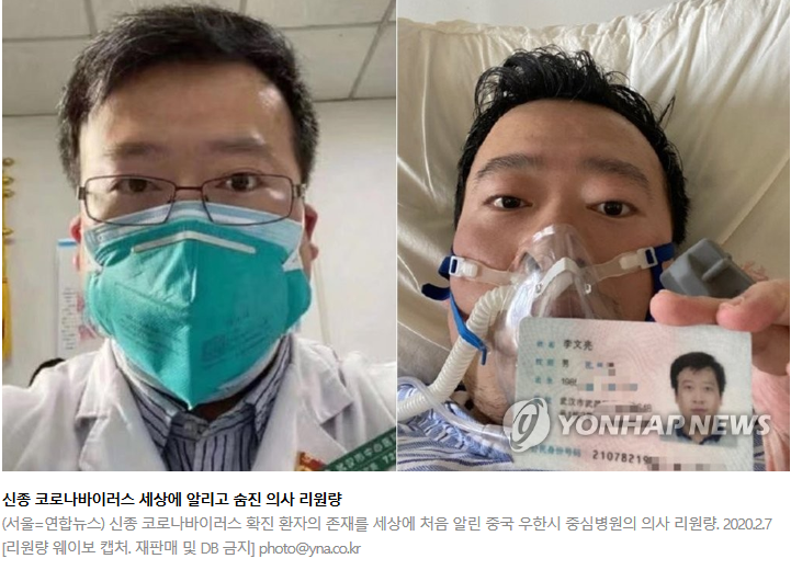2019년 12월 30일, 우한시 안과의사 리원량이 자기동네 수산시장에서 사스바이러스 양성반응 보이는 환자 7명이 있다는 사실을 SNS에 최초로 올림.