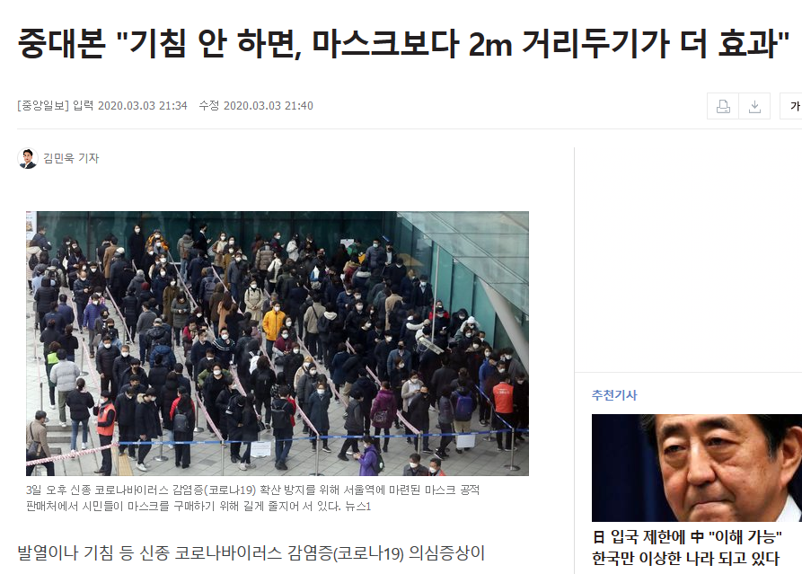 질병관리본부에서는 마스크 쓰라고 하는데 마스크 살 데가 없음.