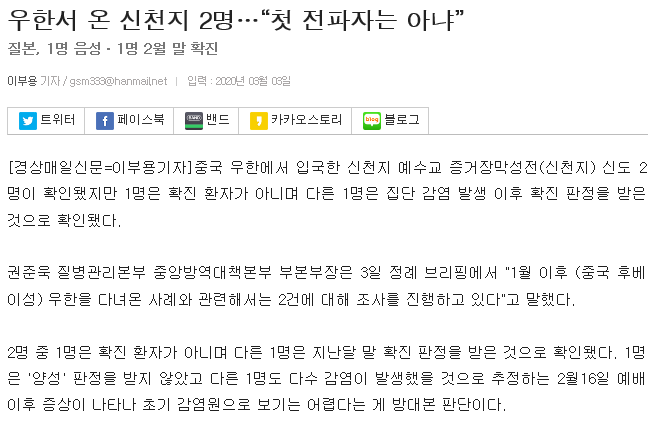 특히 김우주 교수는 2월 1일 인터뷰에서도 후베이 이외의 지역이나 경유해서 들어오는 경우 지역감염으로 확산될 수 있다고 경고함.