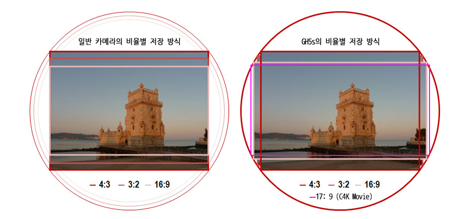 또하나의 장점은 GH5S의 경우 GH5에 비해서 화각이 조금 더 넓어진다. 보통 24mm 화각이 22.3mm로 넓어진다. 이것도 큰 장점이다. c4k 포맷으로 촬영할 경우 더 넓어지는 것을 확인했음.