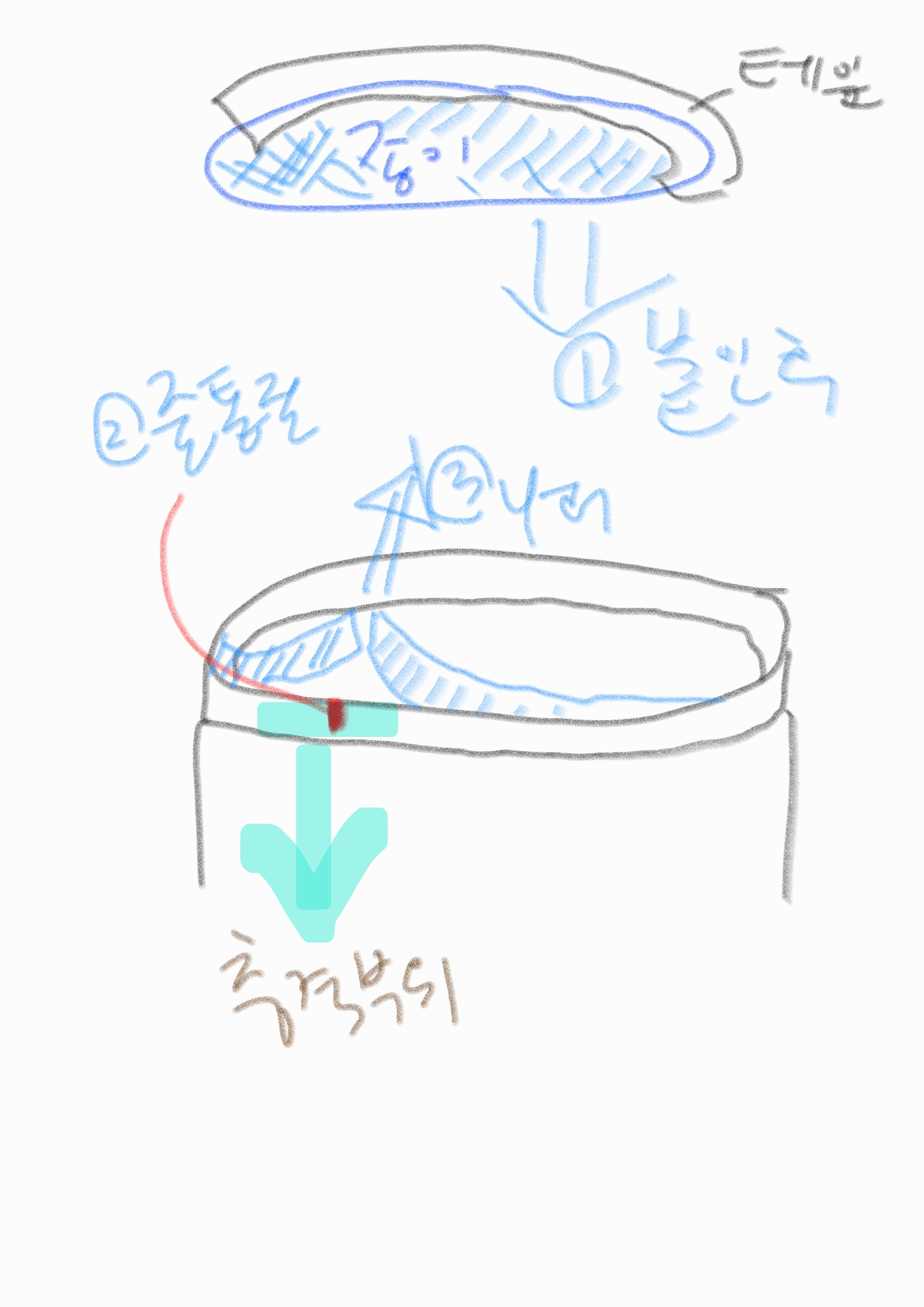 5. 니퍼를 이용해서 잘려진 필터를 집어서 필터를 하트모양으로 렌즈 중심부 쪽으로 말면서 동시에 (트위스트하는 형태로) 안쪽 위쪽 방향으로 필터를 꼬아서 들어올린다. (위 사진의 3번) 위로 말지 않고 중심부쪽으로만 말면 대물렌즈에 기스를 낸다.