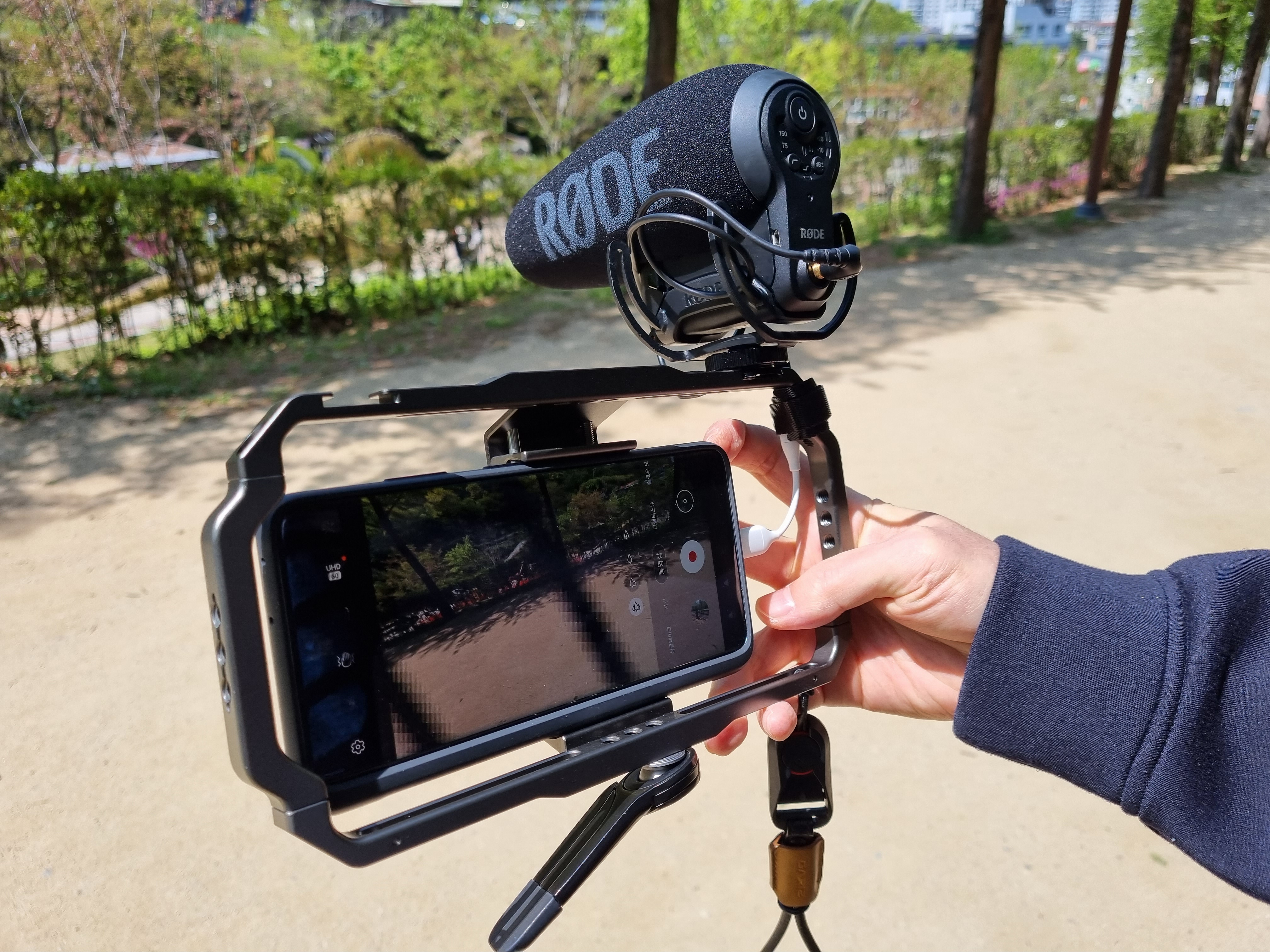 특히 시중의 만원대에 판매되는 스마트폰 홀더들의 지지력과 비교할 수 없는 단단한 체결구조. 손에 쥐고 흔들어도 전혀 부담이 없다. 갤21울트라까지 넣어도 넉넉한 사이즈. 원래는 사이드 핸들까지 구매하려 했으나 그럴 경우 엄지손가락으로 녹화버튼 누르는 게 거의 불가능해져서 폐기.