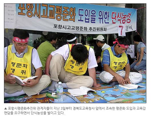 1998년부터 데모를 시작해서 마침내 단식투쟁까지!! 마침내 10년의 노력 끝에 2008년 드디어 포항의 비평준화는 폐지된다.