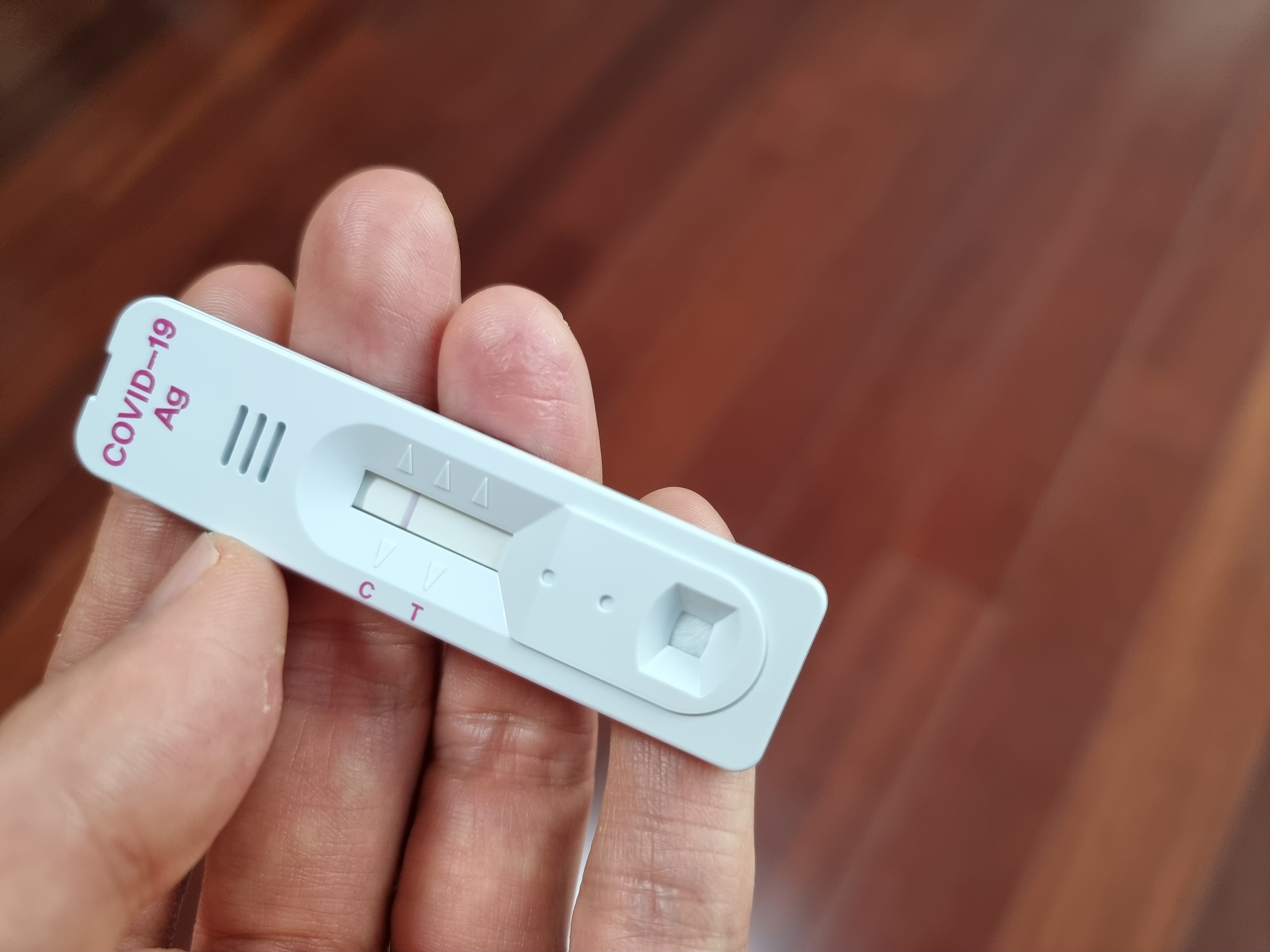 지난 3일 김씨가 코로나 자가진단 키트를 이용해 본인 콧구멍에 코로나 항원이 없음을 어필하고 있다.
