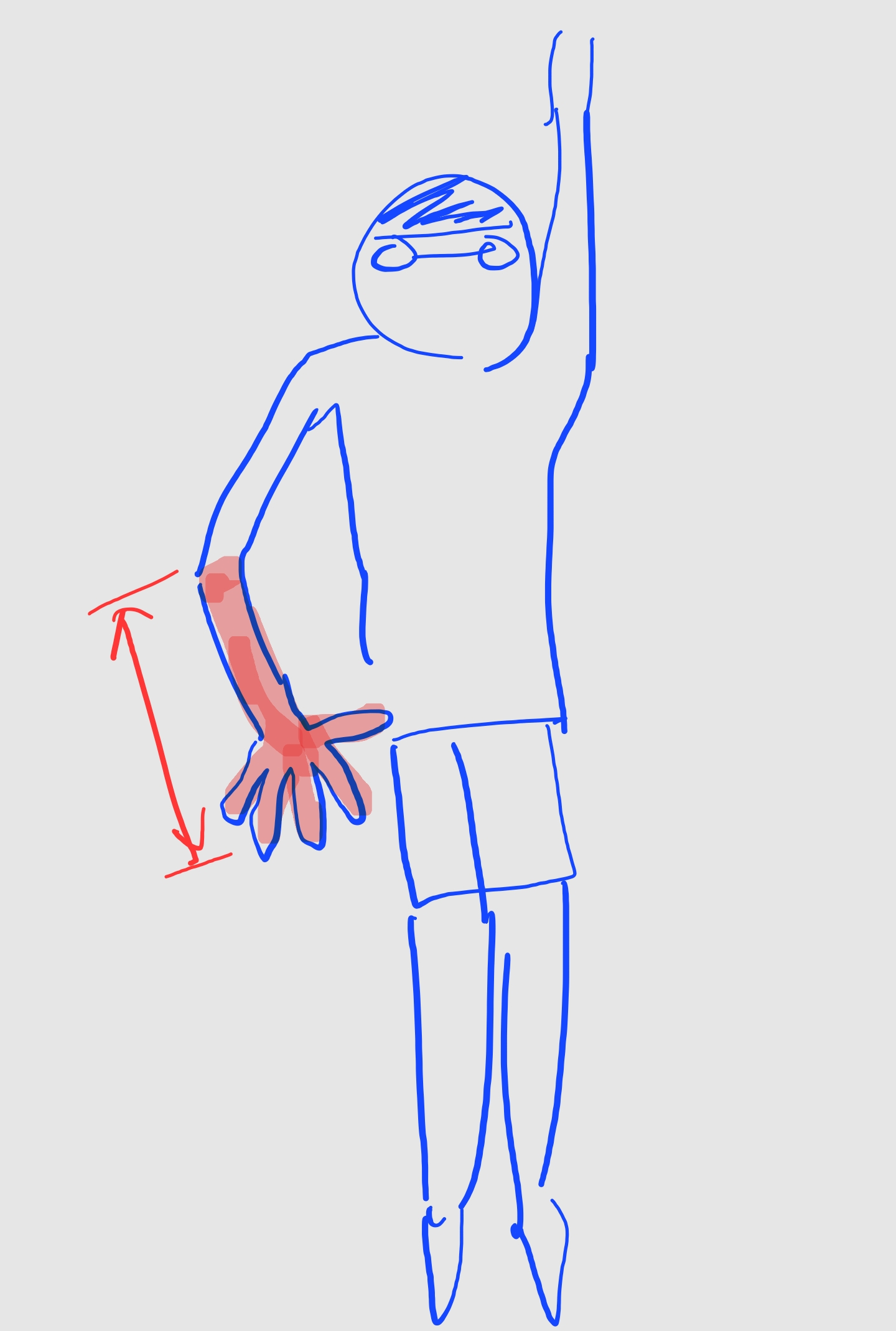제일 중요한 점 : 손가락을 벌린다. 쫙 벌린다. 손가락 모아서 물 당기지 않는다. 불가사리처럼 쫘악 벌려라. 물을 당길 때는 손으로 당기지 않는다. 아래 그림 참조. 붉은 영역이 물을 당기는 영역이다. 팔뚝과 손을 이용해서 당겨야지 손바닥으로 당기는게 아니다.