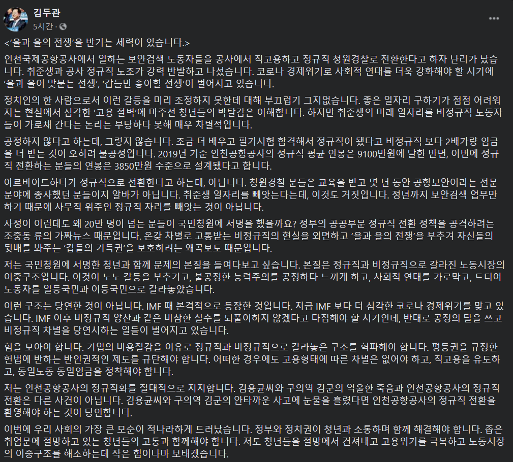 동일 노동 동일 임금입니다. 같은 곳에서 일하면 임금이 같아야합니다.