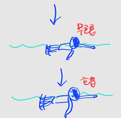 접영은 한팔접영, 자유형은 한팔 스트로크를 가르치는데 팔이 가라앉아버리면 못 배우기 때문에 반드시 한쪽 팔을 강사가 잡아서 앞으로 끌어줘야 한다.