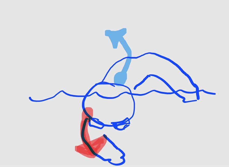 빨강색 어깨를 눌러주면 반대쪽 어깨가 물 위로 돌아서 올라간다. 드라이버 돌아가듯이