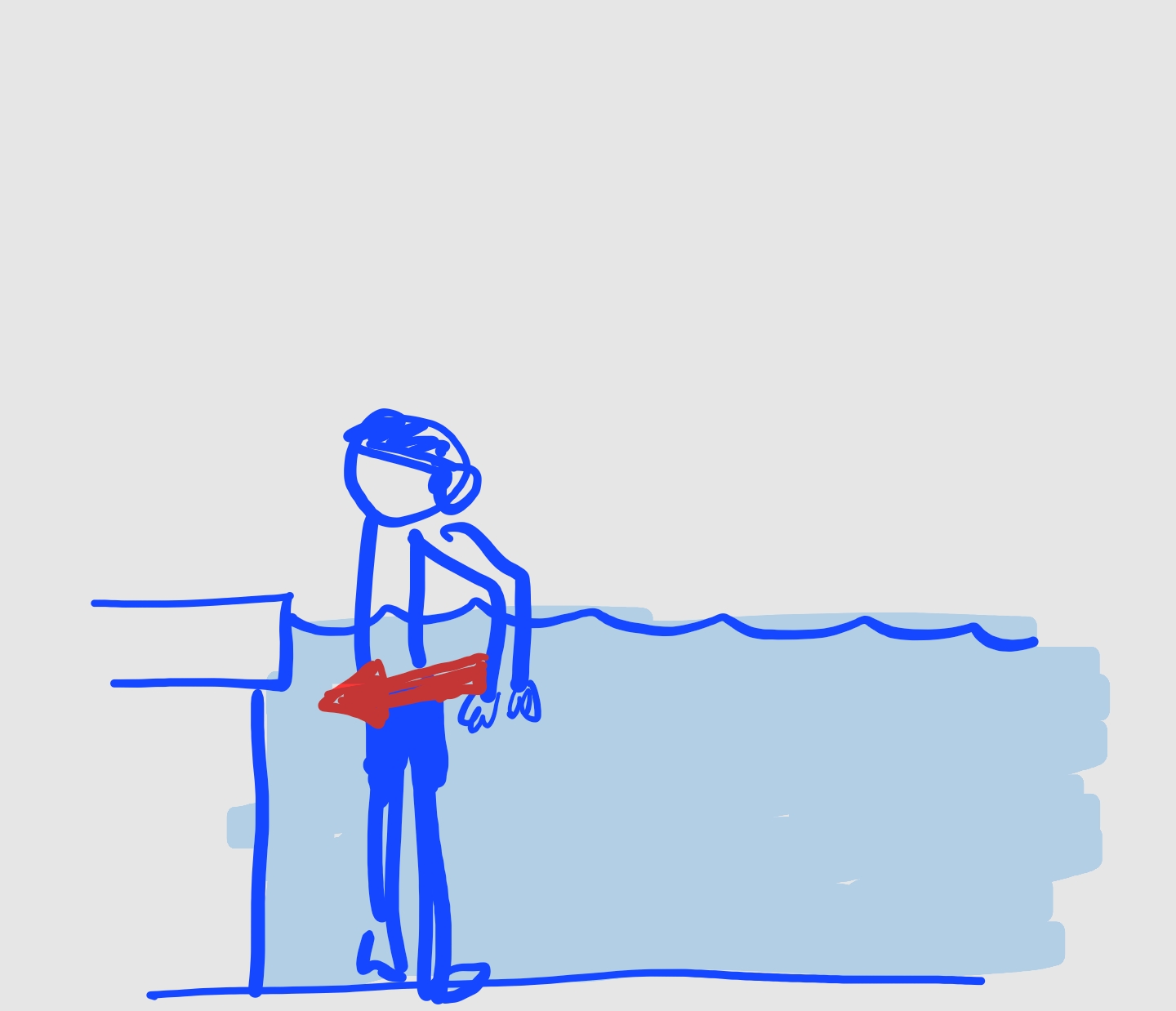 2. 접영 : 살짝 엎드린 상태에서 물 밀어내면서 푸쉬하면서 발끝에 힘주면서 동시에 일어서는 연습(접영) 이 때는 물을 세게 밀어눌러야 한다. 접영이 가장 힘이 필요한 영법이다. 근력이 필요하다. 근력운동을 해야 는다.