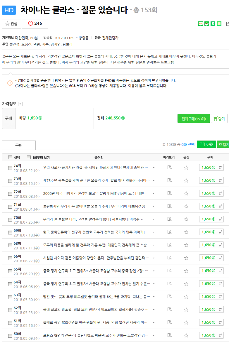 임용한이 나온 차이나는 클라스 67회가 지워졌다길래, 확인해보니 정말 지웠네.