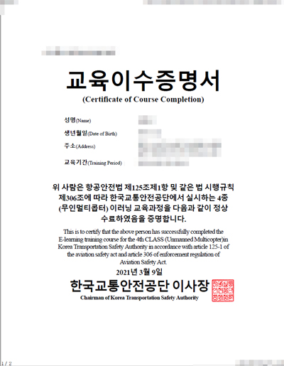 이수기념 기자회견에서 김씨는 "아니 이런 쓸데없는 교육을 왜 하는지 모르겠다. 취미로 드론 날리는 사람에게 지나친 규제라고 본다. 시험문제도 토나오더라. 비지니스도 적당히 좀 해라."는 평을 남겼다.<문화부>