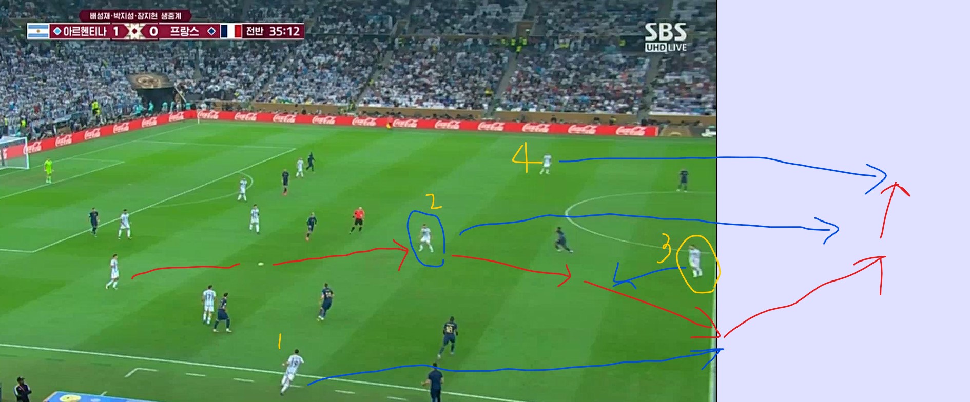 아르헨티나 두번째 골은 모든 선수들이 원터치 패스로 골대까지 공을 가져갔다.