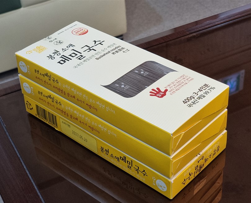 지난 14일 김씨가 환자로부터 메밀국수를 선물받아 주위를 훈훈하게 했다. 국내산 메밀 100%인 제품